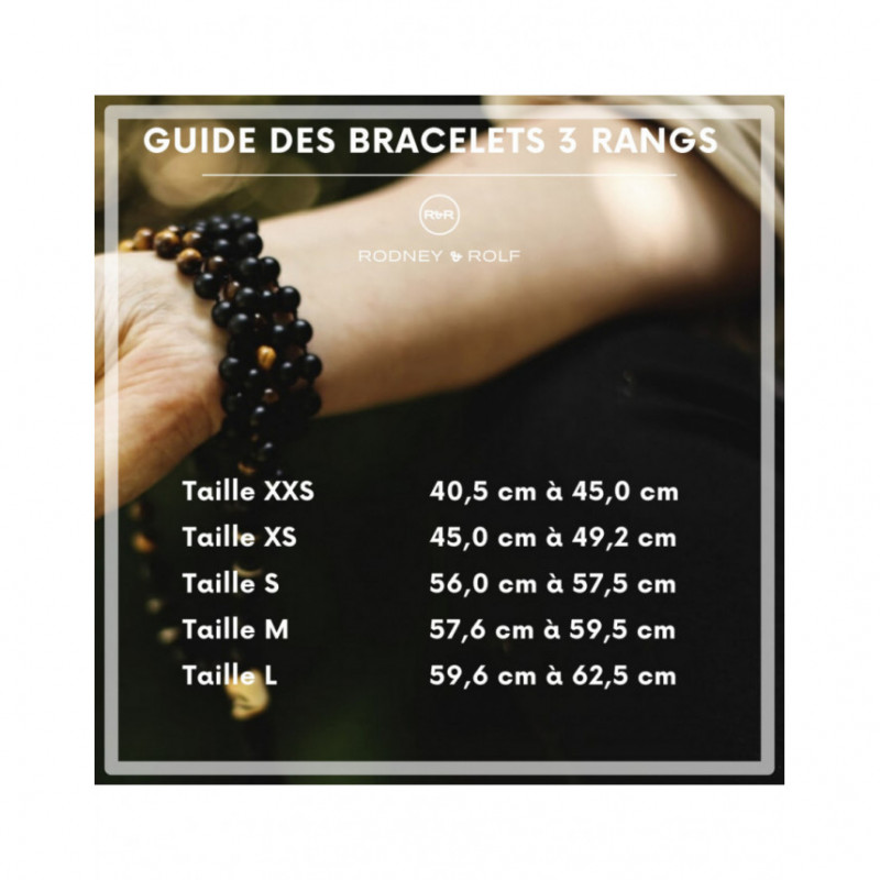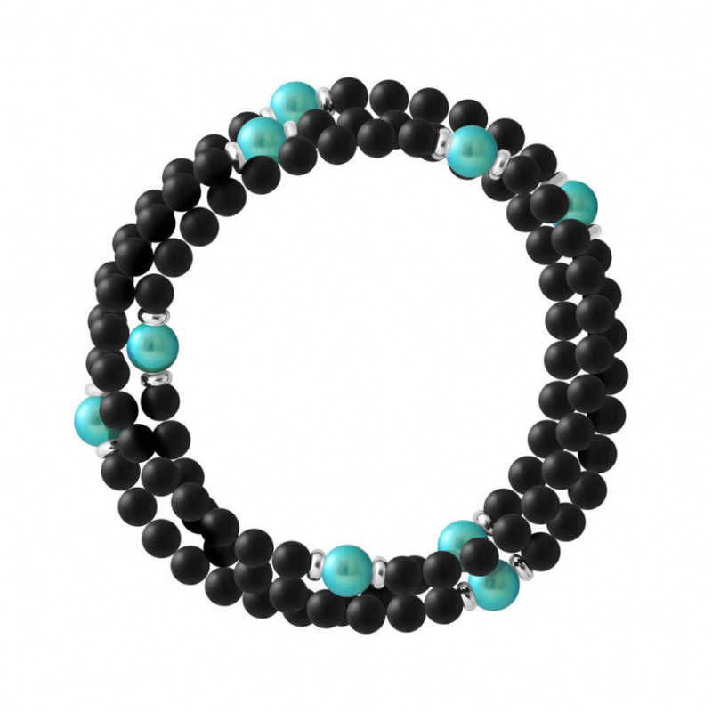 - Bracelet triple rang 9 gemmes - Agate noir - Perle turquoise - Viroles argent massif 925 millièmes - Elastiqué  - Livré avec un certificat d'authenticité et une garantie internationale